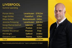 天空体育统计利物浦今夏转入与转出↓