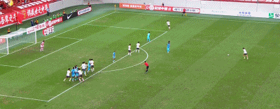 第10分钟,彭啸头球攻门,皮球顶高