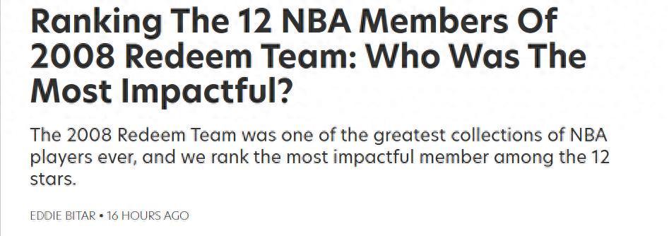 詹姆斯排第三!美媒评梦八救赎之队成员影响力:保罗第5科比夺魁